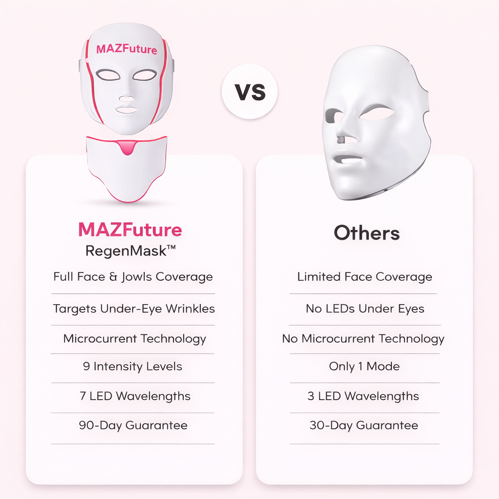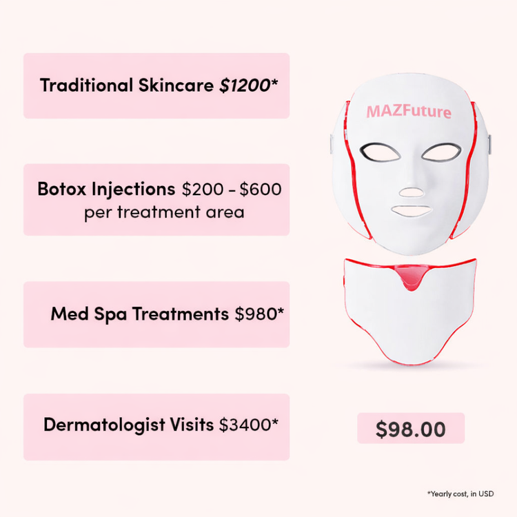 Traditional LED light therapy often requires frequent spa visits to maintain results. With the MazFuture RegenMask™, you can achieve radiant, professional-grade skincare at home in just 10 minutes per session, helping your skin look smoother, brighter, and more youthful.