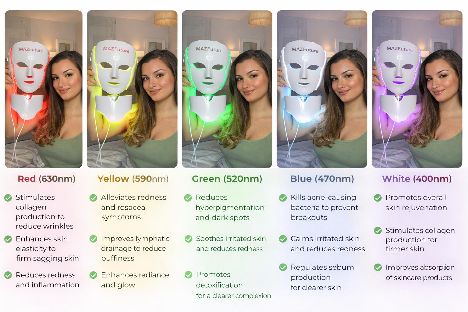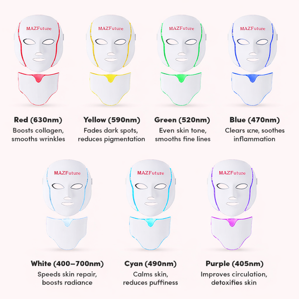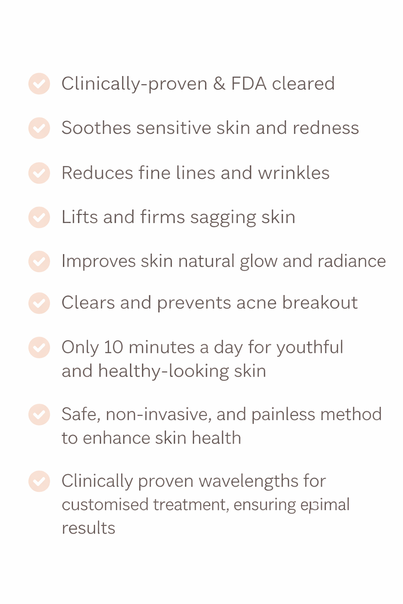 Seven targeted wavelengths address multiple skin concerns.